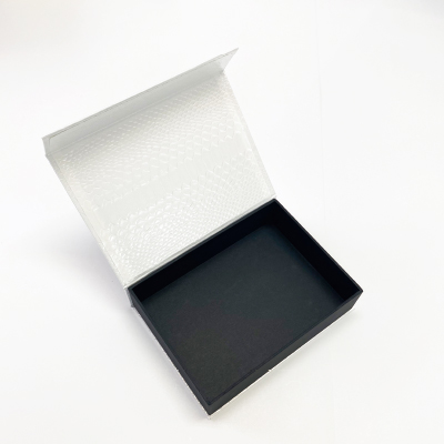 ミとフタの片側で貼り合わせて、片開きにする形状です。強度が高く高級感もあり、アクセサリー用の箱としても適しています。開き具合を調整するリボンを付けることもできます。